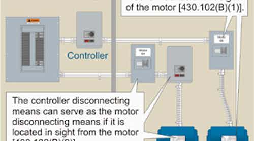 The disconnects are usually in the MCC. The controller disconnecting means 430102A can serve as the disconnecting means for the motor if the disconnect is located in sight from the motor location 430102B2. As more municipalities accept the 2002 NEC electricians electrical contractors and electrical maintenance personnel working on residential commercial and industrial installations may now be required to provide motor disconnects within sight from the motor.